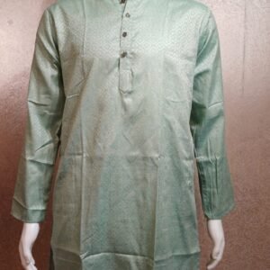 Pastel Green Jacquard Silk Kurta with White Pajama for Men