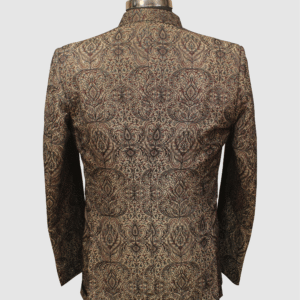 Black & Gold Brocade Indo-Western Sherwani with Decorative Chain Brooch
