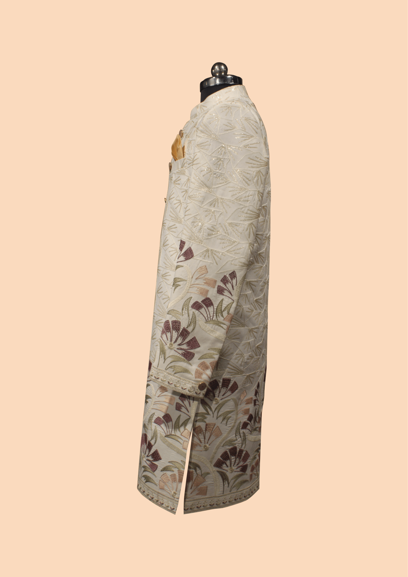 Be the first to review “Elegant Cream Floral Embroidered Sherwani with Golden Detailing”
