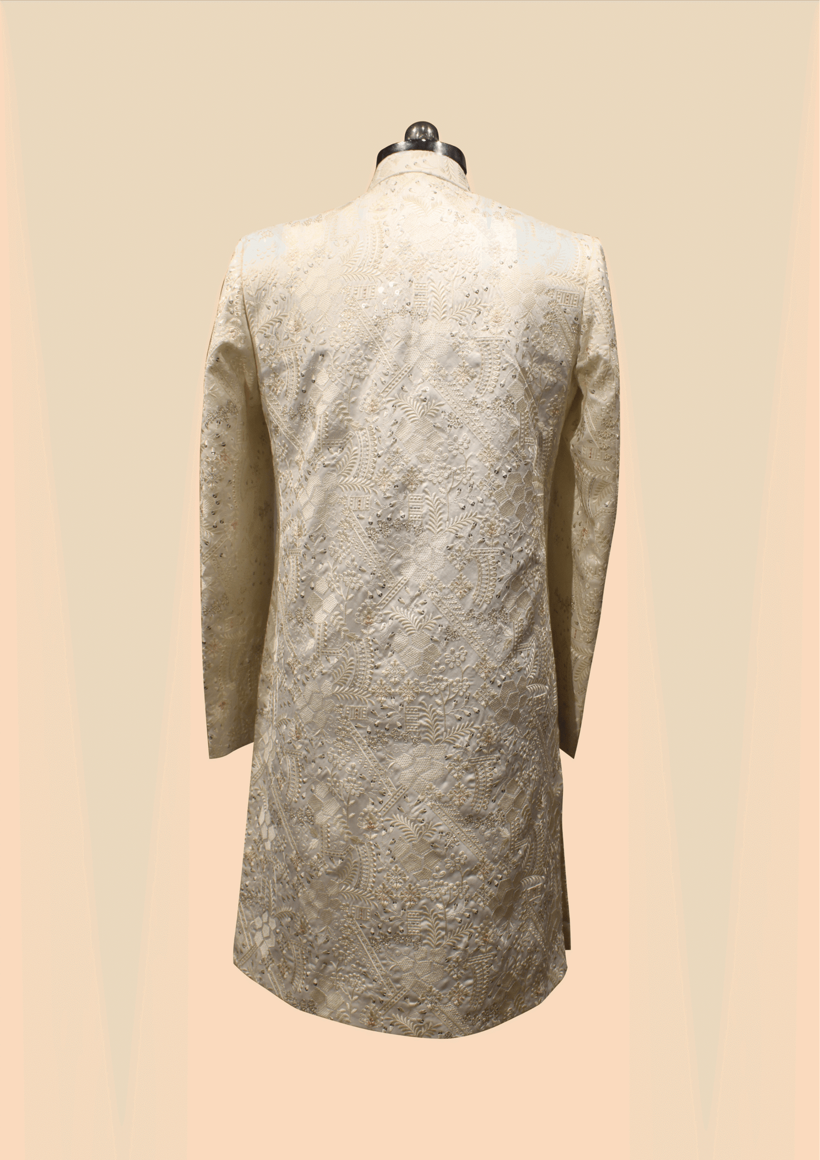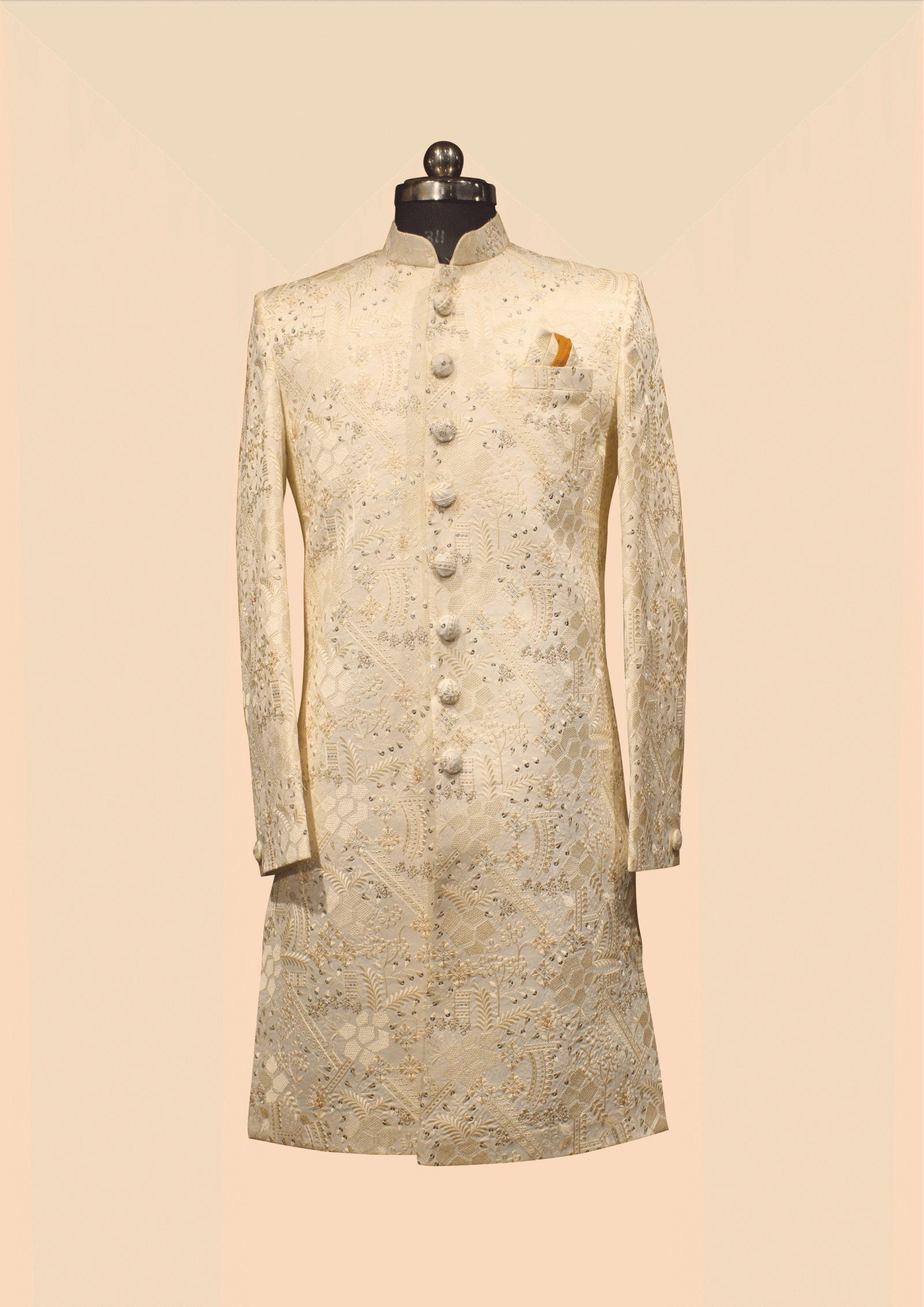 Majestic Golden Ivory Sherwani with Zari Embroidery & Sequin Work