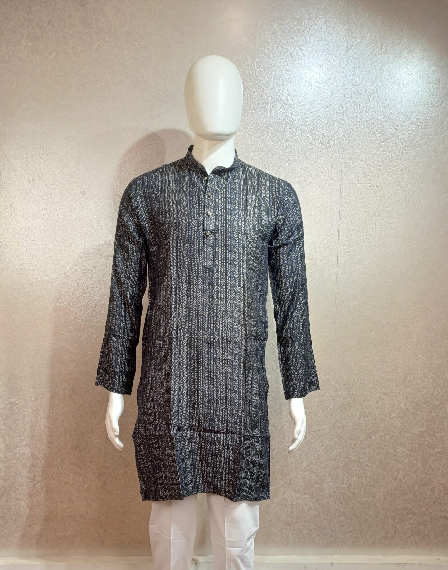 Step into timeless elegance with this Men’s Handloom Cotton Ikat Kurta in Midnight Grey, a perfect blend of traditional artistry and modern sophistication. Crafted using premium 100% handloom cotton, this kurta showcases the age-old Ikat weave technique, known for its intricate geometric patterns and natural dyeing process.